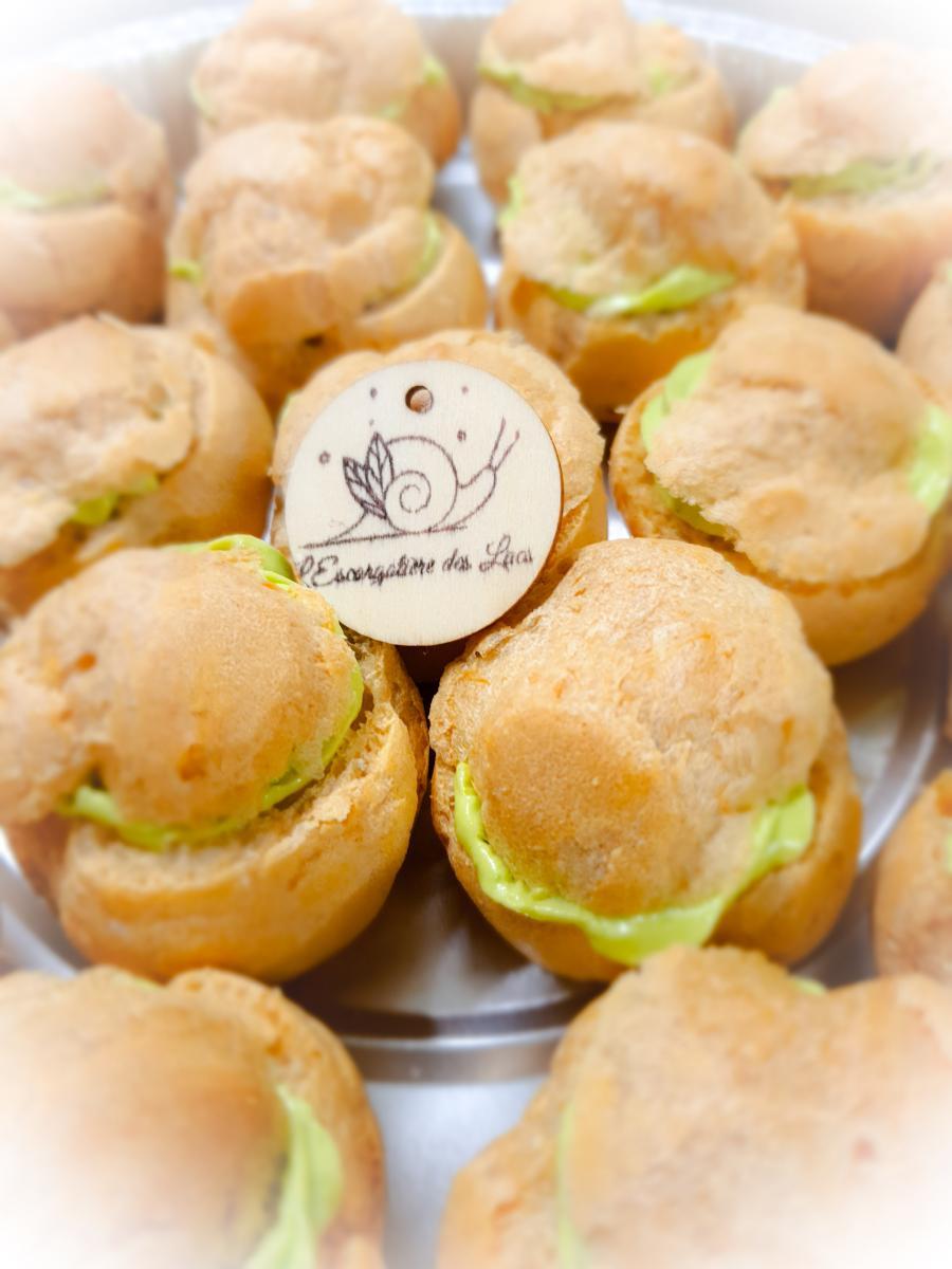 Choux: Oeuf, beurre, sel, farine de blé,poudre à lever, diphosphates et carbonates de sodium