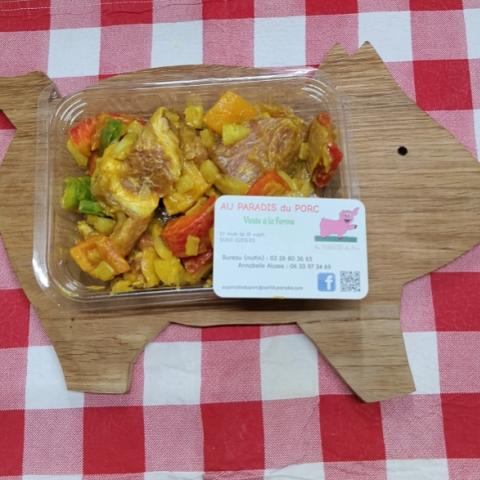 Sauté de porc (morceaux de maigre de porc coupé en cube) mariné, échalote ou curry ou Tex Mex