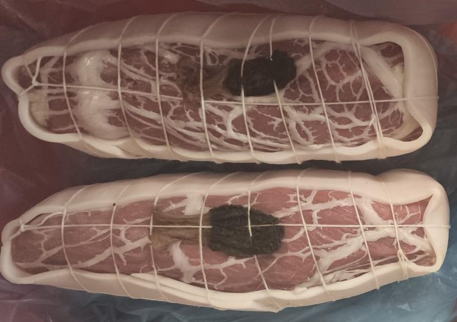 Filet mignon de porc, farce de porc, morilles sel, poivre, épices
