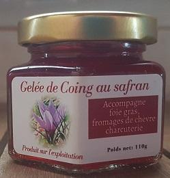 Gelée de coing au safran produit sur la ferme.Délicieux avec du foie gras ou du fromage.