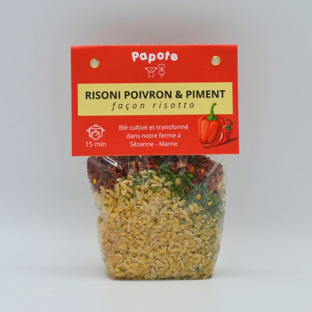 Nouveau! Papote propose la version revisitée du risotto pour les amoureux des pâtes. Les risoni absorbent les arômes du poivron et du piment basque pour donner un risotto de pâtes vibrant, gourmand, relevé, mais pas trop brûlant.