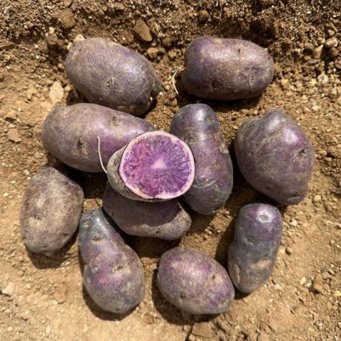 La Violine, pomme de terre de forme ronde, a une peau noire et la chair violette. Elle conserve sa couleur après la cuisson. Agréable au palais, elle laisse un subtil goût de châtaigne et noisette en fin de bouche.